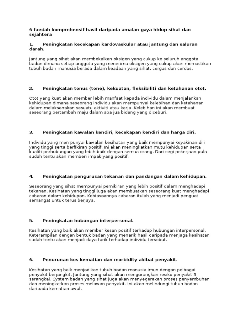 6 Faedah Komprehensif Hasil Daripada Amalan Gaya Hidup Sihat Dan Sejahtera Pdf